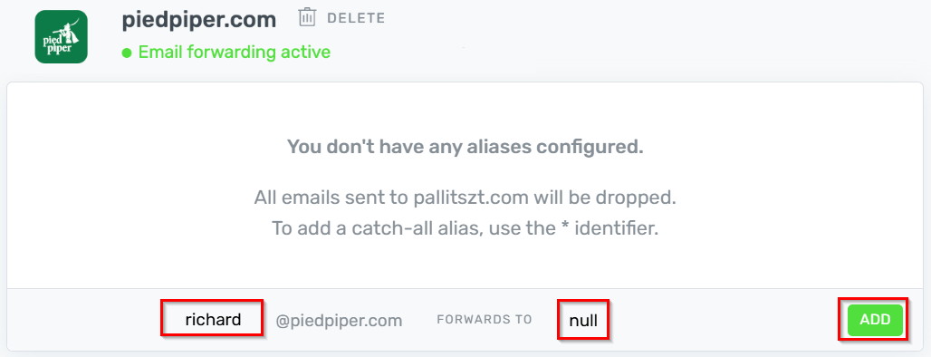 Learn what happens when you set an alias destination to null in ImprovMX.
