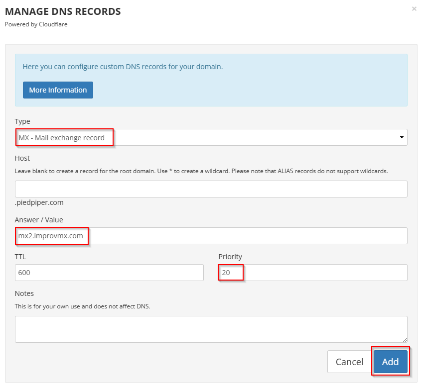 2. Add MX records