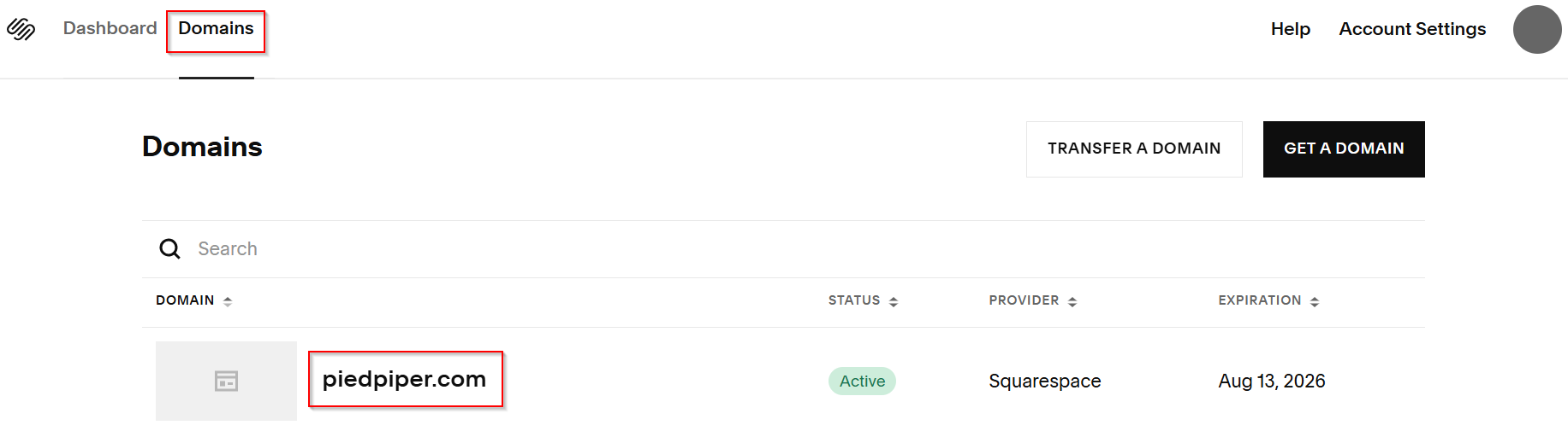 In Squarespace, select Domains tab then select your domain.