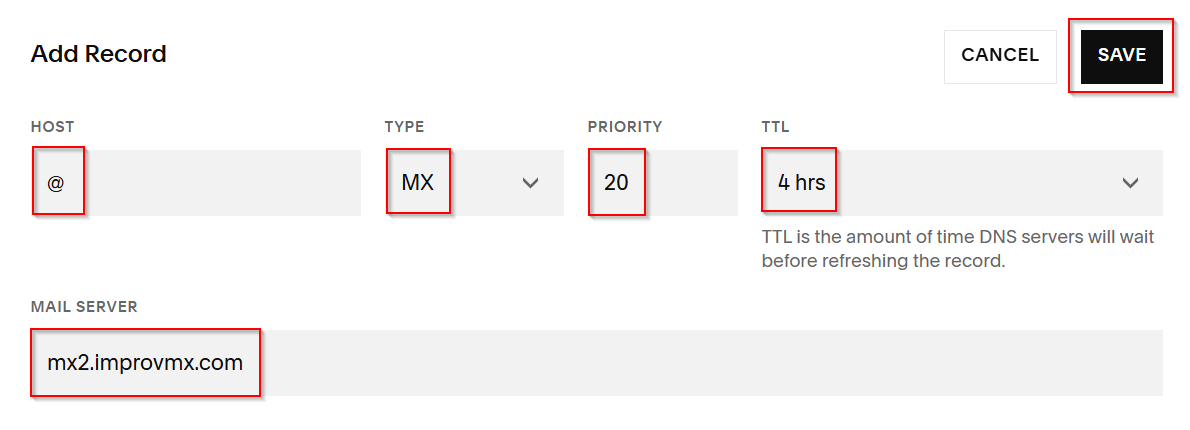 Squarespace DNS Setup For ImprovMX